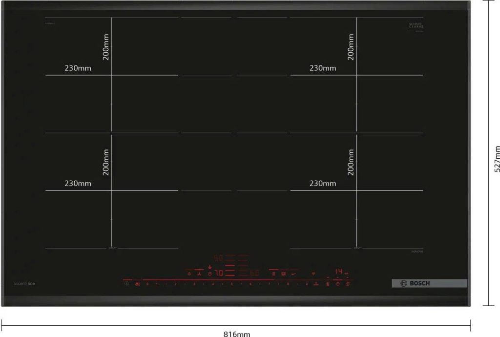 - Các thông số của các bộ phận làm nóng (không áp dụng cho khí gas): 4 x (20,0 x 23,0 cm)