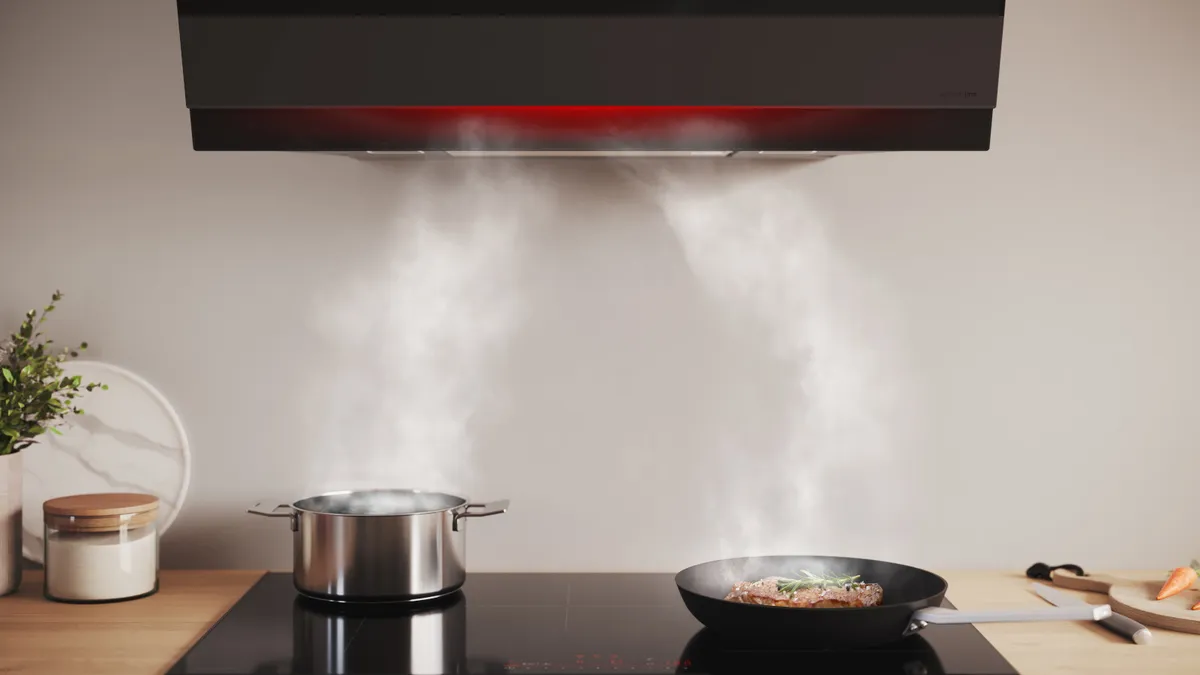 Điều khiển máy hút mùi qua bếp có nghĩa bạn không cần phải lo lắng gì ngoài việc chuẩn bị món ăn yêu thích của mình – vì bếp và máy hút mùi hiện đại của bạn sẽ tự động giao tiếp nhờ vào kết nối Wi-Fi. Ngay khi bạn bật bếp, máy hút mùi sẽ tự động bật lên. Mùi khó chịu sẽ được loại bỏ và hút sạch từ lúc bắt đầu. Hoặc, bạn có thể chuyển sang chế độ thủ công chỉ với một lần chạm vào bếp.